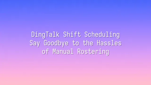For example, a design firm set flexible hours plus a weekly team meeting day for their creative team, while assigning fixed shifts with rotating on-call duties to developers. Result? On-time delivery rates improved, and employee complaints like "I’m not a robot!" dropped by half. Who says scheduling can’t be both smart and humane? In DingTalk’s world, rules aren’t shackles—they’re wings that help your team soar steadily.