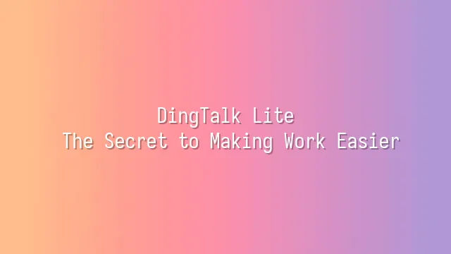 DingTalk Lite, core features, installation methods, maximize efficiency