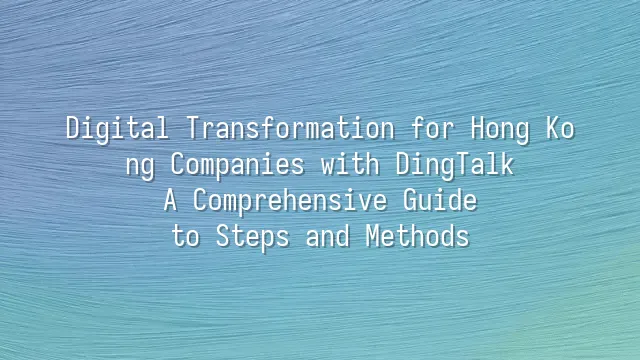 Digital Transformation for Hong Kong Companies with DingTalk: A Comprehensive Guide to Steps and Methods