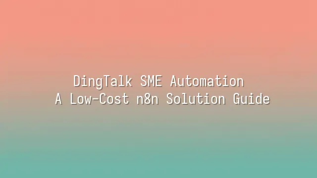 DingTalk SME Automation: A Low-Cost n8n Solution Guide
