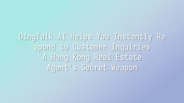 DingTalk AI Helps You Instantly Respond to Customer Inquiries: A Hong Kong Real Estate Agent's Secret Weapon