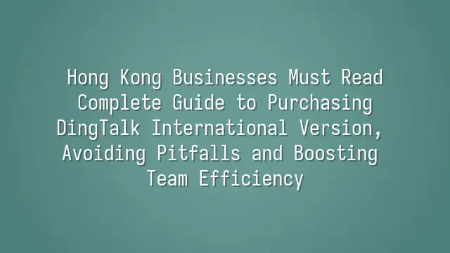 Hong Kong Businesses Must Read: Complete Guide to Purchasing DingTalk International Version, Avoiding Pitfalls and Boosting Team Efficiency