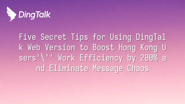 Five Secret Tips for Using DingTalk Web Version to Boost Hong Kong Users' Work Efficiency by 200% and Eliminate Message Chaos