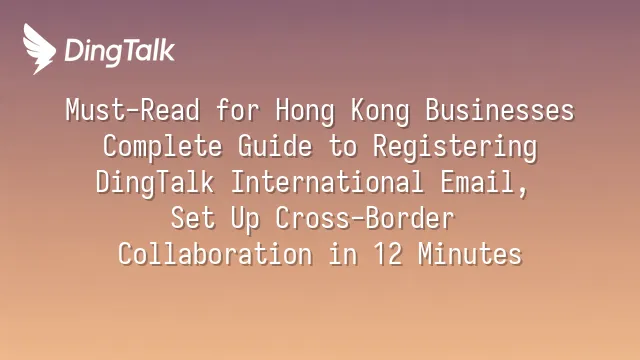 Must-Read for Hong Kong Businesses: Complete Guide to Registering DingTalk International Email, Set Up Cross-Border Collaboration in 12 Minutes