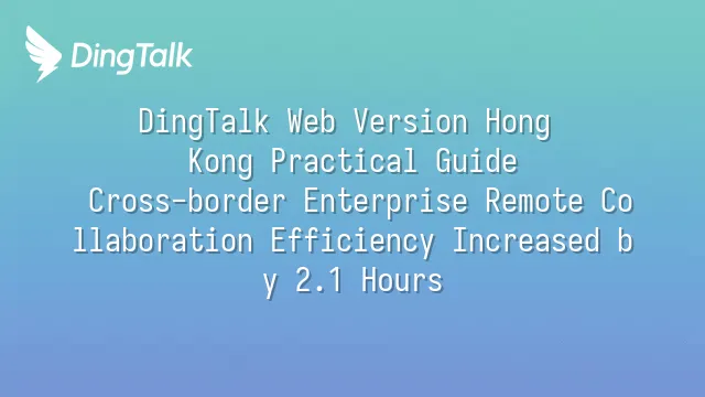 DingTalk Web Version Hong Kong Practical Guide: Cross-border Enterprise Remote Collaboration Efficiency Increased by 2.1 Hours