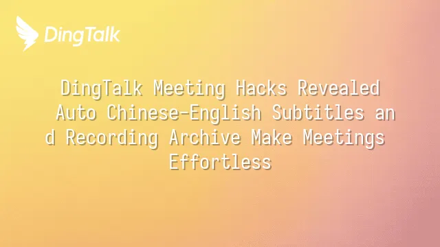 Still scrambling to take notes during meetings? Worried about missing key decisions? DingTalk's automatic Chinese-English subtitles and meeting recording features are a game-changer for today’s professionals. This article div...