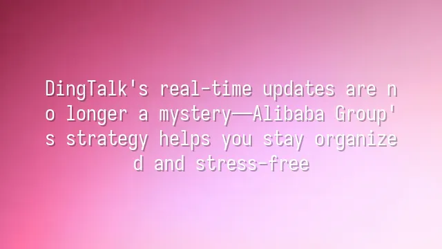 DingTalk's real-time updates are no longer a mystery—Alibaba Group's strategy helps you stay organized and stress-free