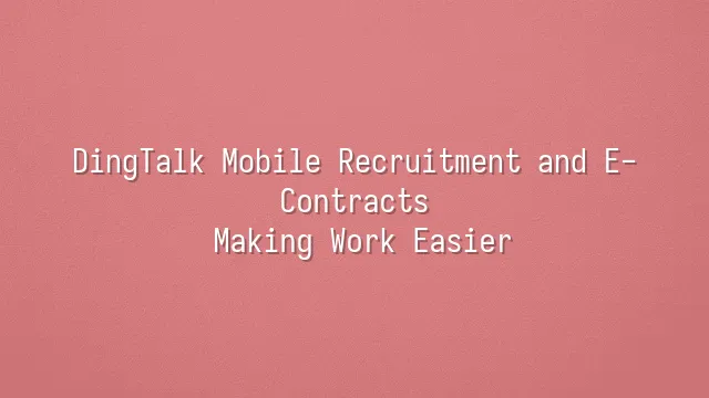 In this digital age, traditional hiring methods and paper-based contracts are gradually becoming obsolete. As a powerful enterprise collaboration tool, DingTalk offers mobile recruitment and electronic contract features, enab...