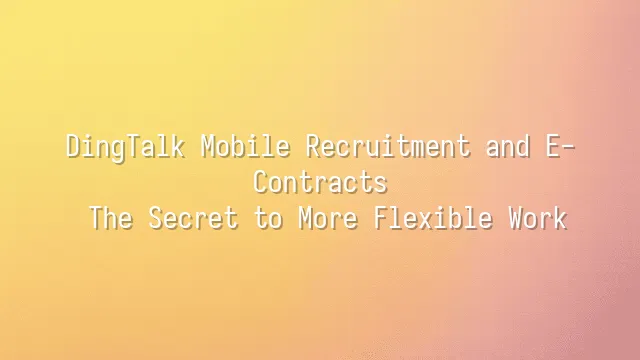 In this digital age, traditional human resource management and contract signing methods can no longer meet the needs of modern enterprises. As a comprehensive business communication and collaboration platform, DingTalk offers...