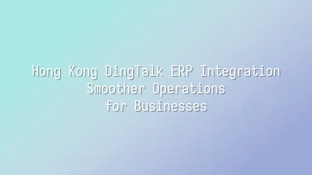 In Hong Kong's highly competitive business environment, an efficient enterprise resource planning (ERP) system is crucial. This article provides a detailed guide on how integrating DingTalk ERP can help your company achieve s...