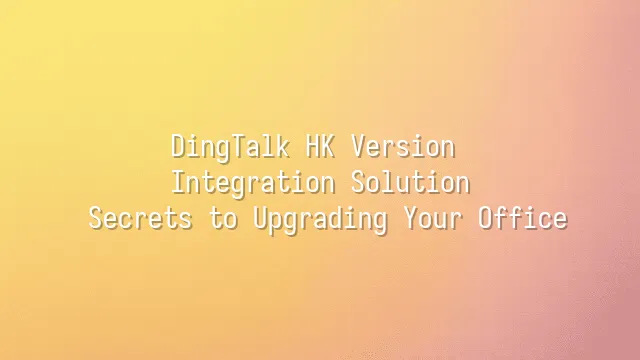 DingTalk HK Version Integration Solution: Secrets to Upgrading Your Office