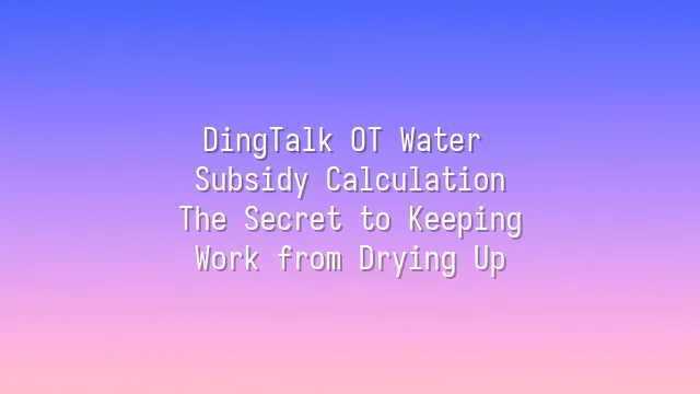 DingTalk OT Water Subsidy Calculation: The Secret to Keeping Work from Drying Up