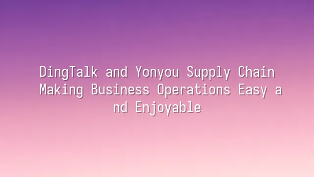 In modern enterprises, efficient supply chain management is crucial. This article will show how to use DingTalk, a powerful tool, to handle Yonyou supply chain operations, making your work not only more efficient but also enj...