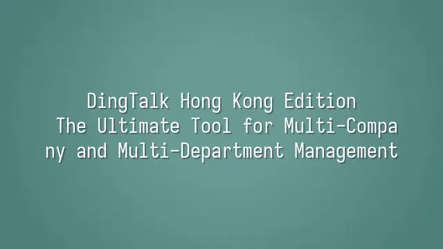 In today's modern business environment, managing multiple companies and departments can be chaotic. Fortunately, DingTalk Hong Kong Edition is here to help! This article dives into how DingTalk Hong Kong Edition supports mult...