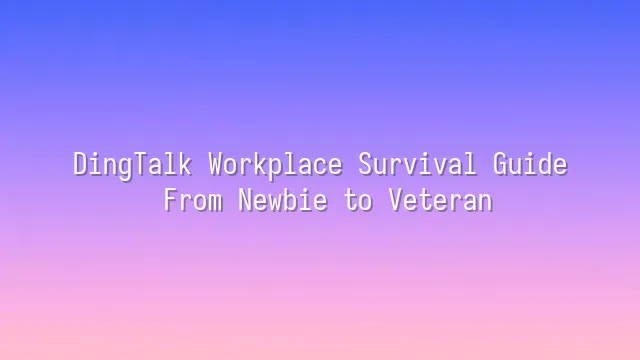 DingTalk Workplace Survival Guide: From Newbie to Veteran