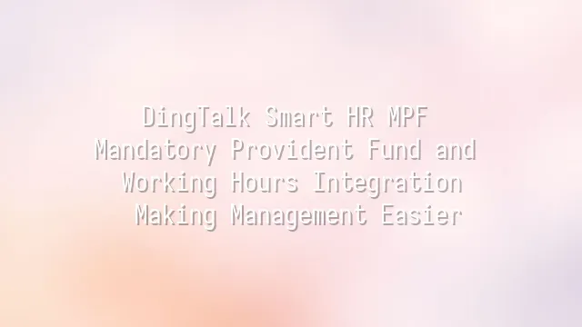 DingTalk Smart HR MPF Mandatory Provident Fund and Working Hours Integration: Making Management Easier