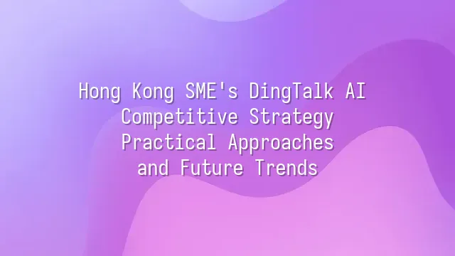 Hong Kong SME's DingTalk AI Competitive Strategy: Practical Approaches and Future Trends