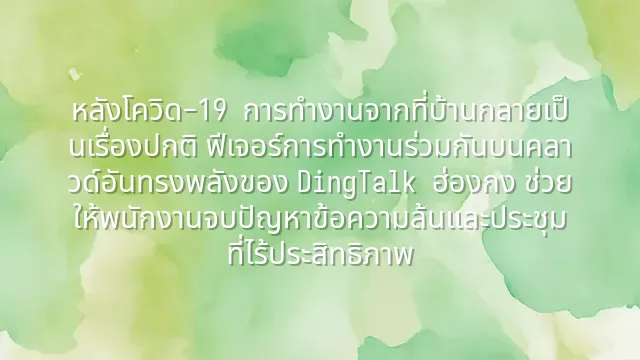 โซลูชันสำนักงานบนคลาวด์ของ DingTalk ฮ่องกงได้เปลี่ยนนิยามพื้นฐานของการสื่อสารองค์กรใหม่ สำหรับอุตสาหกรรมที่มีแรงกดดันสูงอย่างการเงินหรืออสังหาริมทรัพย์ อีเมลแบบเดิมตอบช้า กลุ่ม WhatsApp ข้อความระเบิด คำสั่งสำคัญมักจมหาย DingTalk ใช้ฟีเจอร์สถานะ "อ่านแล้ว/ยังไม่อ่าน" และระบบ DING ที่ส่งการแจ้งเตือนบังคับ ทำให้มั่นใจว่าข้อความสำคัญจะไม่หลุดแม้แต่ข้อความเดียว แม้ผู้รับจะกำลังเล่นโซเชียลมีเดียอยู่ก็ตาม รูปแบบการสื่อสารแบบรุกนี้ แปลงการรอแบบตั้งรับให้กลายเป็นกระบวนการที่ติดตามผลได้