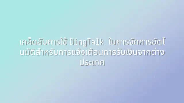 เมื่อตัดสินใจแล้วว่าจะใช้ DingTalk จัดการการแจ้งเตือนการรับเงินจากต่างประเทศ ก็ได้เวลาเปิดม่านความลับของระบบอัตโนมัติกันเลย! ลองนึกภาพตาม: ขณะที่ลูกค้าในยุโรปเพิ่งชำระเงินเสร็จ เพื่อนร่วมทีมยังคงจิบกาแฟยามเช้าอยู่ แต่ในกลุ่ม DingTalk ก็ดังขึ้น “ดิ้งดอง!” พร้อมข้อความแจ้งว่า “บริษัทช็อกโกแลตสวิส รับเงินเข้าบัญชี $5,000 เรียบร้อย!” จะตื่นตัวกว่าเสียงนาฬิกาปลุกไหม?