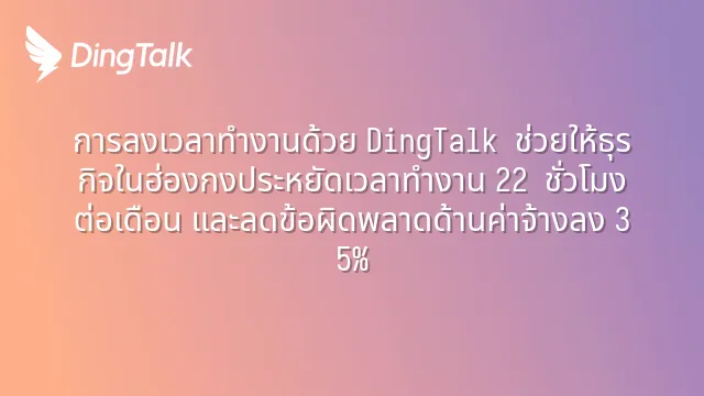 จากการแก้ปัญหาการลงเวลาแทนกันและการคำนวณผิดพลาด ธุรกิจของคุณจะค่อย ๆ บรรลุคุณค่าระยะยาว 3 ประการ คือ การบริหารที่โปร่งใส การดำเนินงานที่มีประสิทธิภาพ และการปฏิบัติตามกฎหมายโดยไม่มีข้อผิดพลาด การตั้งค่ากฎการลงเวลาของ DingTalk ตอนนี้ คือการวางรากฐานข้อมูลสำหรับการตัดสินใจด้านทรัพยากรมนุษย์ในอนาคต — ดำเนินการทันที ปลดล็อกศักยภาพเชิงกลยุทธ์ของฝ่ายบุคคล ให้ทุกนาทีของการทำงานสร้างผลลัพธ์ได้อย่างแม่นยำ