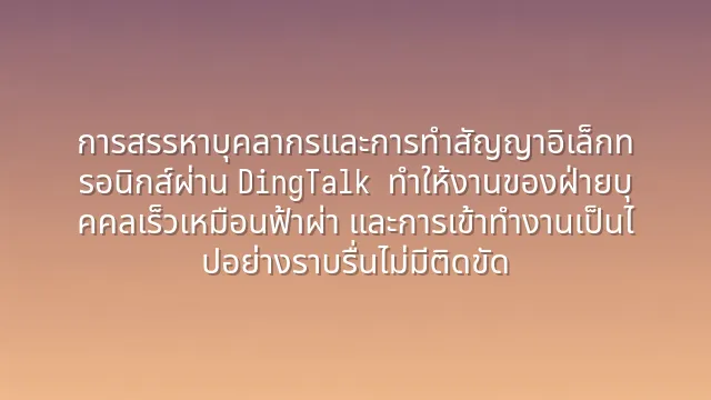 การประทับเวลาและการเข้ารหัสระดับทหารเสริมความแข็งแกร่งให้กับผลทางกฎหมาย สัญญาทุกฉบับมี “หลักฐานการเกิดดิจิทัล” ที่สมบูรณ์ เมื่อการเซ็นชื่อเสร็จสิ้น เอกสารจะถูกซิงค์ทันทีไปยังระบบหลังบ้านของ HR อัปเดตแฟ้มพนักงานโดยอัตโนมัติ และกระตุ้นกระบวนการทำงานถัดไป ไม่เพียงแต่ย่อขั้นตอนที่เคยใช้เวลาหลายวันให้เหลือเพียงไม่กี่ชั่วโมง แต่ยังขจัดปัญหาที่พบบ่อยกับเอกสารกระดาษ เช่น เอกสารหาย รุ่นข้อมูลสับสน หรือการเซ็นไม่ครบ ระบบการสรรหาแบบมือถือและสัญญาอิเล็กทรอนิกส์ของ DingTalk จึงไม่ใช่แค่เครื่องมือเพื่อประสิทธิภาพ แต่เป็นแนวป้องกันสุดท้ายที่ปกป้องผลลัพธ์ด้านบุคลากรขององค์กร