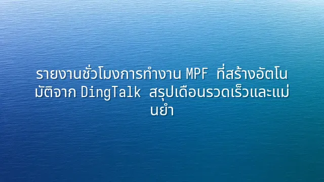 ในช่วงเวลาทำงานที่ยุ่งเหยิง ทุกคนย่อมหวังว่าจะสามารถทำงานให้มีประสิทธิภาพมากยิ่งขึ้น ฟีเจอร์การสร้างรายงานชั่วโมงทำงาน MPF โดยอัตโนมัติจาก DingTalk ถูกสร้างขึ้นเพื่อตอบโจทย์นี้โดยเฉพาะ! ไม่เพียงแต่ช่วยให้คุณสร้างรายงานที่ถูกต...