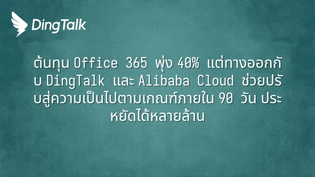 ต้นทุน Office 365 พุ่ง 40% แต่ทางออกกับ DingTalk และ Alibaba Cloud ช่วยปรับสู่ความเป็นไปตามเกณฑ์ภายใน 90 วัน ประหยัดได้หลายล้าน