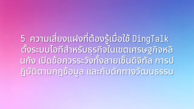 5 ความเสี่ยงแฝงที่ต้องรู้เมื่อใช้ DingTalk ตั้งระบบไอทีสำหรับธุรกิจในเขตเศรษฐกิจหลินกัง เปิดข้อควรระวังทั้งลายเซ็นดิจิทัล การปฏิบัติตามกฎข้อมูล และกับดักทางวัฒนธรรม