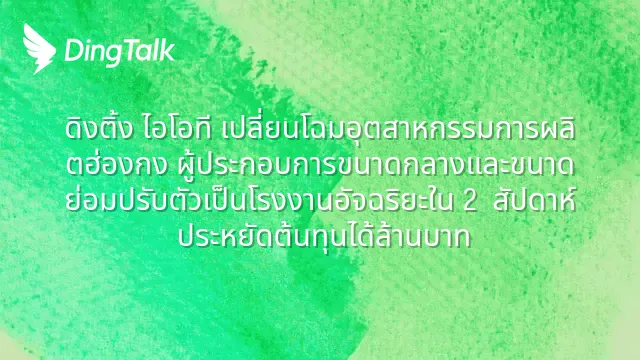 ดิงติ้ง ไอโอที เปลี่ยนโฉมอุตสาหกรรมการผลิตฮ่องกง ผู้ประกอบการขนาดกลางและขนาดย่อมปรับตัวเป็นโรงงานอัจฉริยะใน 2 สัปดาห์ ประหยัดต้นทุนได้ล้านบาท