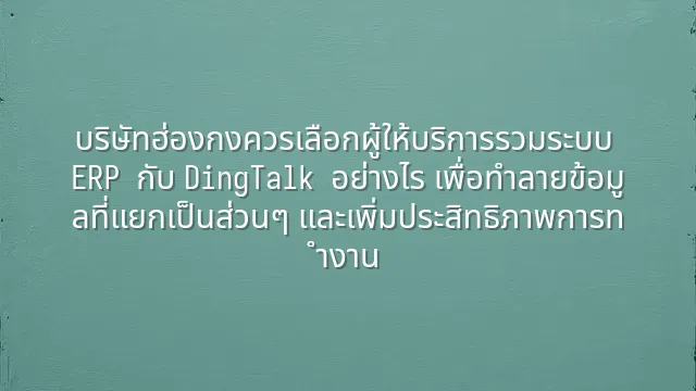บริษัทฮ่องกงควรเลือกผู้ให้บริการรวมระบบ ERP กับ DingTalk อย่างไร เพื่อทำลายข้อมูลที่แยกเป็นส่วนๆ และเพิ่มประสิทธิภาพการทำงาน