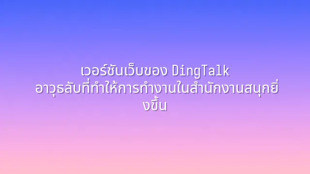 ในยุคดิจิทัลนี้ การทำงานจากระยะไกลและการร่วมมือกันผ่านออนไลน์ได้กลายเป็นส่วนหนึ่งของชีวิตประจำวันแล้ว DingTalk เวอร์ชันเว็บ ซึ่งเป็นเครื่องมือสำนักงานที่ทรงพลังไม่เพียงแต่ช่วยเพิ่มประสิทธิภาพการทำงาน แต่ยังทำให้การสื่อสารภายใ...