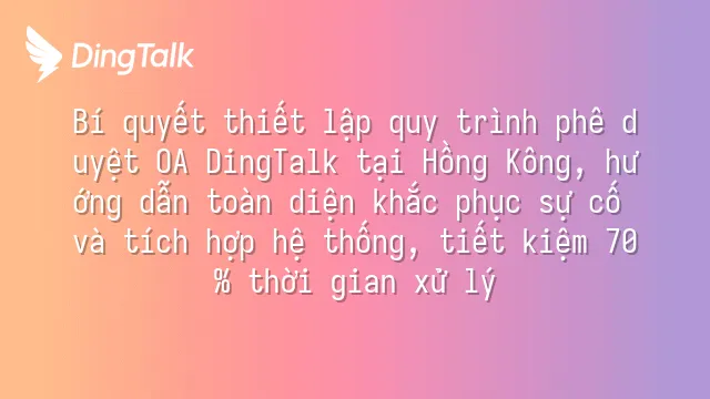 - Cơ chế thông báo: Gửi nhắc nhở đồng thời qua ứng dụng đẩy (App push), SMS và WeChat doanh nghiệp, đảm bảo phê duyệt không bị trì hoãn, tỷ lệ mở đạt 92%, theo Báo cáo sinh thái DingTalk năm 2024.