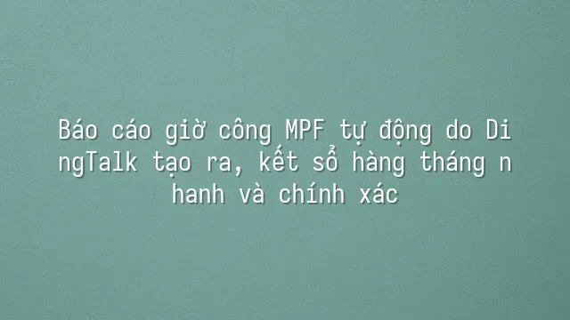 Trong công việc bận rộn, ai cũng mong muốn hoàn thành nhiệm vụ hiệu quả hơn. Tính năng tự động tạo báo cáo thời gian làm việc MPF trên DingTalk ra đời chính là để đáp ứng nhu cầu này! Tính năng không chỉ giúp bạn nhanh chóng ...