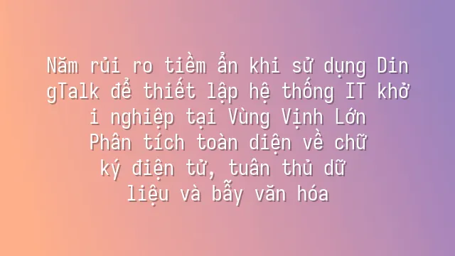 Muốn dùng DingTalk để xây dựng hệ thống IT tại Vùng Vịnh Lớn? Khi khởi nghiệp tại Vùng Vịnh Lớn, cần lưu ý gì khi thiết lập hệ thống IT bằng DingTalk? Nhìn thì tiện lợi, nhưng thực tế lại tiềm ẩn nhiều rủi ro. Chữ ký điện tử,...