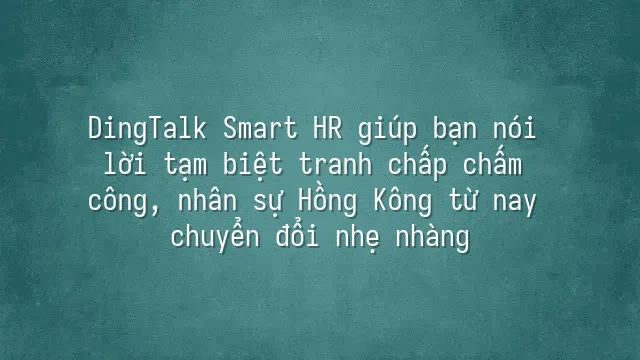 Vẫn còn đau đầu vì đơn xin nghỉ phép và các tranh chấp chấm công? SmartHR DingTalk đang âm thầm khởi xướng một cuộc cách mạng văn phòng, giúp nhân sự Hồng Kông thoát khỏi đống công việc hành chính, chuyển mình thành đối tác c...