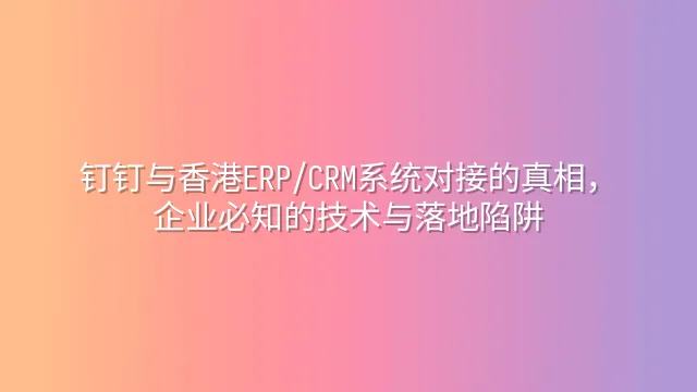 钉钉是否能与香港常见的ERP/CRM系统对接,绝非挥手即成的魔法。表面上是技术问题,实则牵涉预算、人力与组织变革。现成连接器看似方便,但通常只支持基本功能,如单向推送客户资料;一旦需同步库存或财务流程,往往要修改底层逻辑。定制开发虽弹性高,却耗费资源且维护成本高昂,令IT部门疲于奔命。