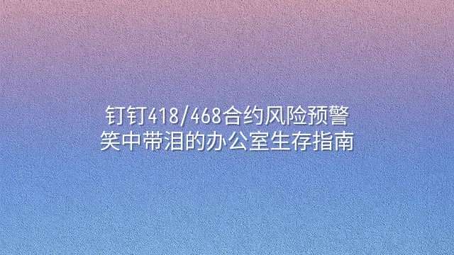 风险管理策略不是法务部的专利,而是每位打工人在茶水间都能聊出花来的生存技能。当你发现钉钉418/468合约里藏着「自动续约且不可撤回」条款时,别急着哭,先笑——然后马上启动三步防御工事。