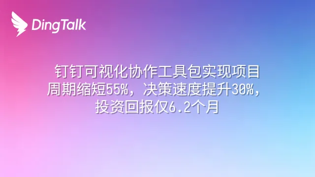 你现在使用的协作工具,决定三年后的市场地位。钉钉智慧办公室的可视化协作工具包,已帮助数千家企业实现项目周期缩短55%、沟通成本降低45%、投资回报周期仅6.2个月的实证成效。