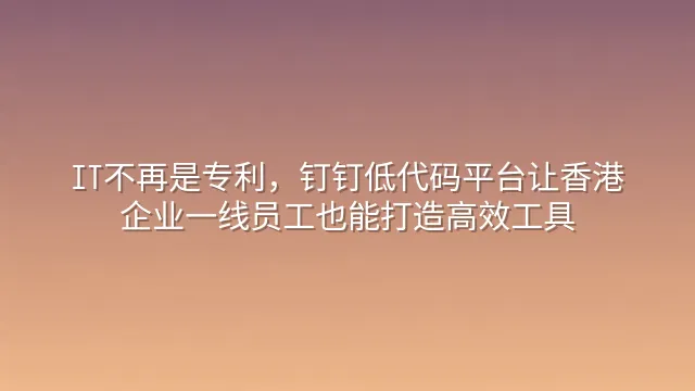 未来竞争关键不在程序员多寡,而在想法转化为工具的速度。钉钉低代码平台让IT角色从“守门员”转型为“教练”,引导业务用户合规创新。当治理与敏捷取得平衡,企业将重塑应变基因。钉钉低代码平台不仅是工具,更是香港企业在变动时代中,持续进化的核心密码。