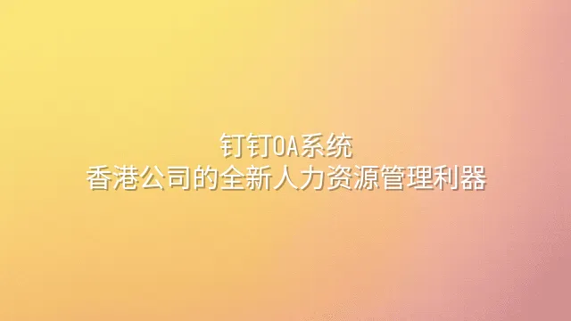 钉钉OA系统:香港公司的全新人力资源管理利器