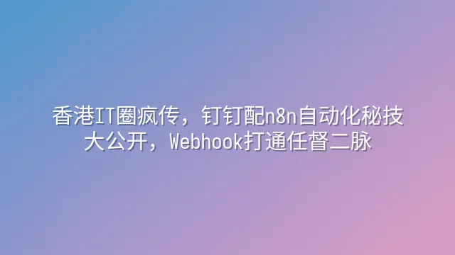 香港IT圈疯传,钉钉配n8n自动化秘技大公开,Webhook打通任督二脉