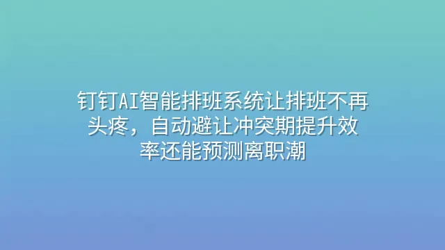 钉钉AI智能排班系统让排班不再头疼,自动避让冲突期提升效率还能预测离职潮
