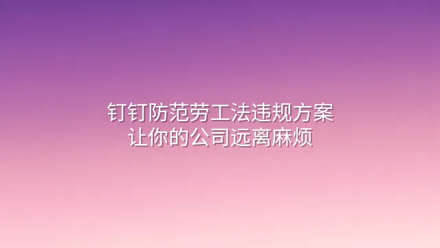 钉钉防范劳工法违规方案:让你的公司远离麻烦