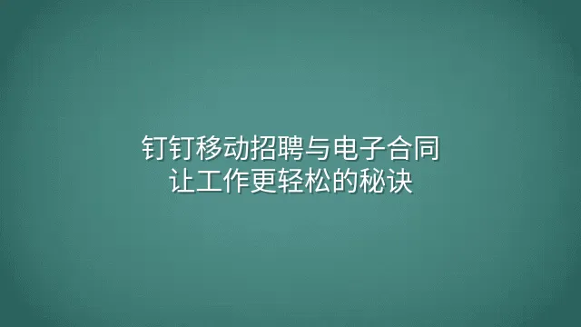 钉钉移动招聘与电子合同:让工作更轻松的秘诀