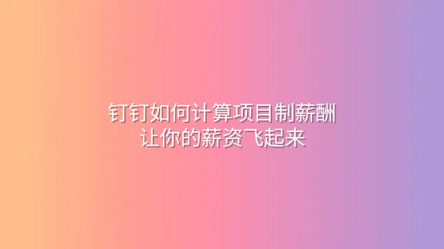 钉钉如何计算项目制薪酬:让你的薪资飞起来