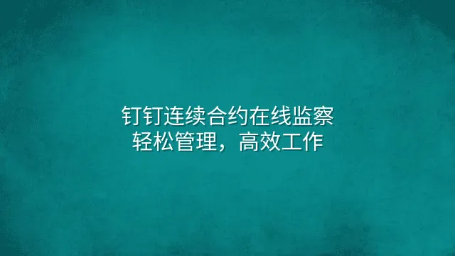 钉钉连续合约在线监察:轻松管理,高效工作