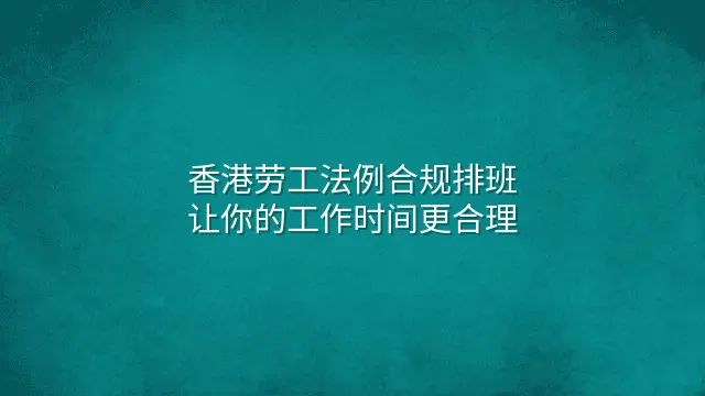 香港劳工法例合规排班:让你的工作时间更合理