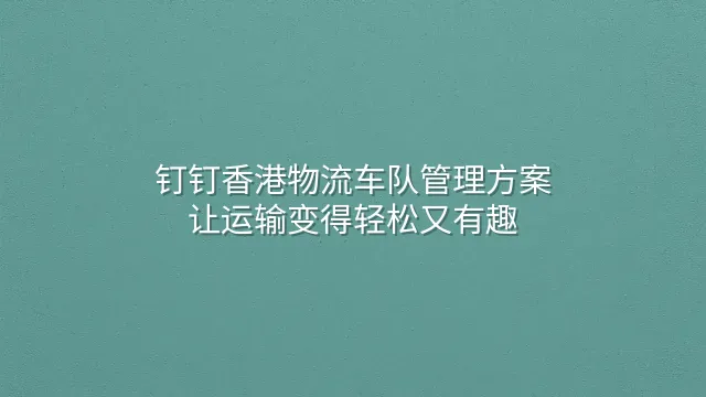 钉钉香港物流车队管理方案:让运输变得轻松又有趣