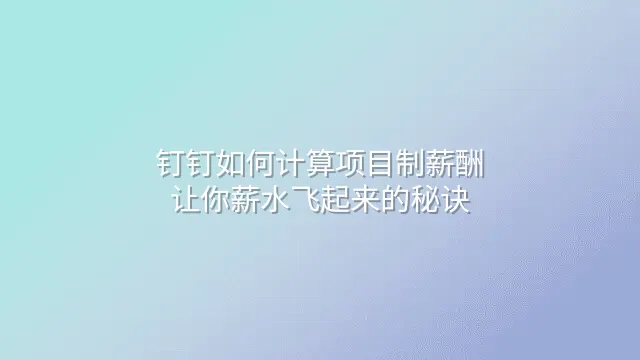 钉钉如何计算项目制薪酬:让你薪水飞起来的秘诀