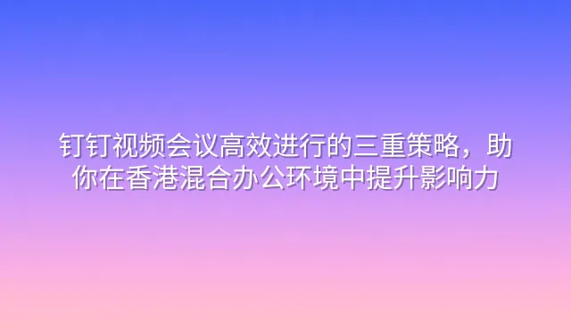 钉钉视频会议高效进行的三重策略,助你在香港混合办公环境中提升影响力